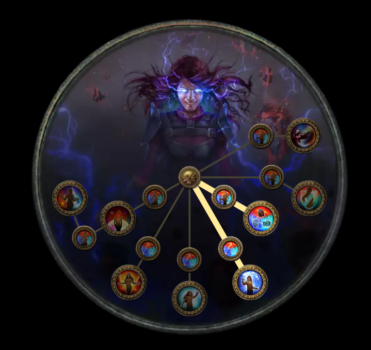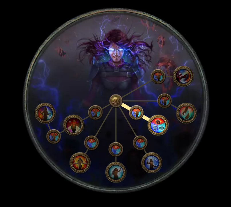 - Elemental Damage, Lightning Ailment Effect : เพิ่มความเสียหายธาตุ 10%, เพิ่มผลของสถานะเจ็บป่วยทางสายฟ้า 10% (เช่น ทำให้ Shock แรงขึ้น)
