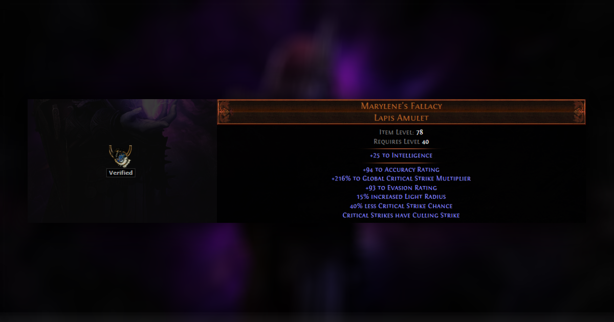 เริ่มเล่นคอนเทนต์ Endgame โดยไม่ต้องมีของอะไรที่ต้องใช้เลย มีอะไรดี ๆ ก็ใส่ไปก่อน แต่จะมีแค่ที่ต้องเก็บเงินซื้อคือ Marylene's Fallacy Lapis Amulet สร้อยคอระดับ Unique ที่ให้ความสามารถ