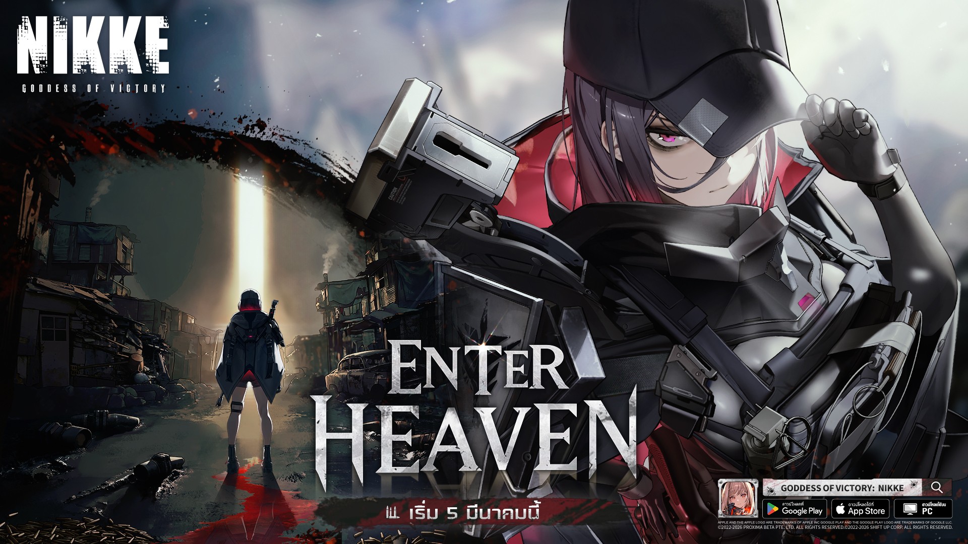 Level Infinite ได้ประกาศอัปเดตเนื้อหาใหม่สำหรับเกม GODDESS OF VICTORY: NIKKE ในวันนี้ (5 มีนาคม 2026) โดยเพิ่มอีเวนต์เนื้อเรื่องใหม่ที่มีชื่อว่า ENTER HEAVEN ซึ่งมีเนื้อหาเกี่ยวกับการสืบสวนข้อความปริศนาที่เชื่อว่าเป็นของสมาชิกกลุ่มเฮฟเวนลี่แอสเซนชั่นที่ยังคงหลงเหลืออยู่ในพื้นที่เมืองชั้นนอก เหตุการณ์ดังกล่าวทำให้รัฐบาลกลางเริ่มตั้งข้อสงสัยต่อ E.H. อดีตผู้นำกลุ่มที่เคยประกาศยุบองค์กรไปแล้ว ผู้เล่นสามารถเข้าร่วมอีเวนต์และเคลียร์ด่านต่างๆ เพื่อรับไอเทมสำหรับนำไปแลกเปลี่ยนเป็นตั๋วรับสมัครและวัสดุเพิ่มสกิลในร้านค้าอีเวนต์ได้จนถึงวันที่ 19 มีนาคม 2026