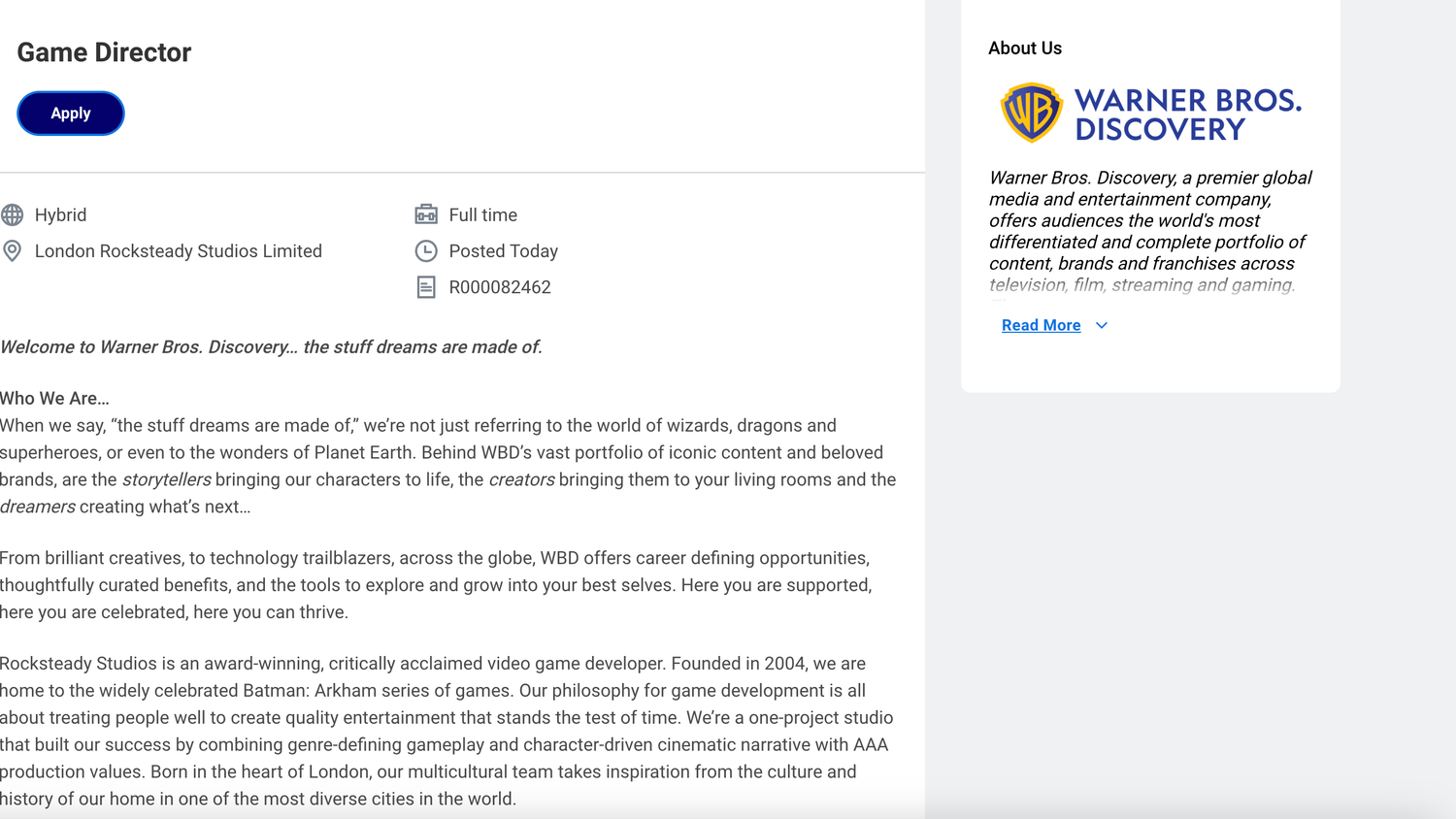 ประกาศรับสมัครงาน ปรากฏบนเว็บไซต์ของ Warner Bros. Discovery ระบุว่า Rocksteady ต้องการ Game Director ที่มีความสามารถในการ "สร้างสรรค์งานออกแบบคุณภาพสูงในทุกส่วนของเกม ทั้งในส่วนของกลไกหลัก ระบบความก้าวหน้าของผู้เล่น ระบบต่อสู้ และการออกแบบภารกิจ"